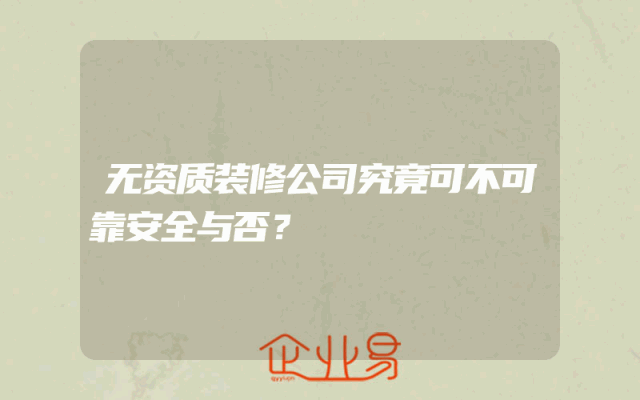 - 无资质装修公司究竟可不可靠安全与否?背景分析近年来,随着装修市场的不断扩大和装修需求的不断增加,市场上涌现出了众多的装修公司。其中不乏一些无资质的公司,他们往往会通过各种渠道进行宣传,但如何确保他们的质量和安全性,成为许多业主心中的疑问。在