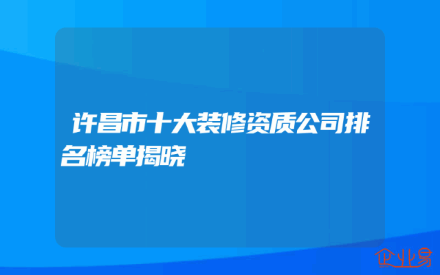 - 许昌市十大装修资质公司排名榜单揭晓一、引言随着社会的不断发展,人们对居住环境的要求也日益提高。在许昌市,众多装修公司在激烈的市场竞争中崭露头角。本文将揭晓许昌市十大装修资质公司的排名榜单,为广大消费者提供权威的参考。二、排名榜单前十