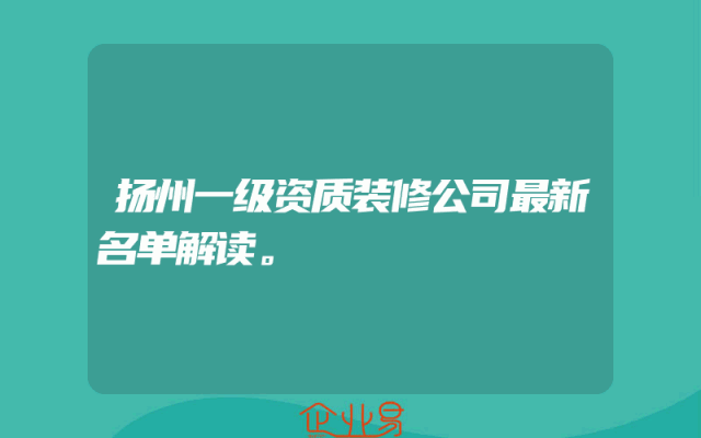 - 扬州一级资质装修公司最新名单解读一、引言随着城市化进程的加快,装修行业迅速发展,扬州作为历史悠久的文化名城,装修行业亦日渐繁荣。近期,扬州一级资质装修公司的最新名单发布,引起了社会各界的广泛关注。本文旨在从不同角度对这份名单进行解读,帮助大