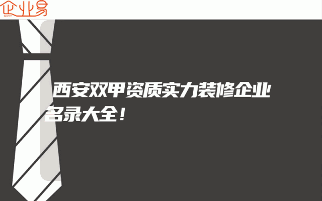 - 西安双甲资质实力装修企业名录大全一、引言随着城市化进程的加快,装修行业在西安得到了迅猛发展。拥有双甲资质实力的装修企业,以其卓越的专业技术、深厚的行业经验以及良好的服务质量,赢得了广大客户的信赖。本文将为您呈现西安双甲资质实力装修企业名录,