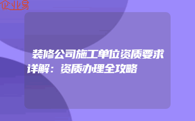 - 装修公司施工单位资质要求详解:资质办理全攻略