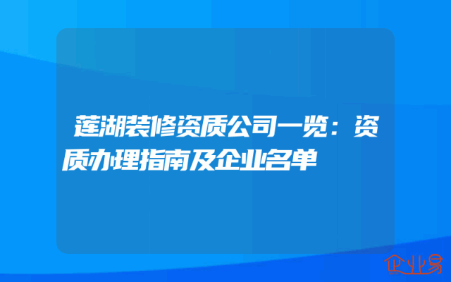 - 莲湖装修资质公司一览:资质办理指南及企业名单