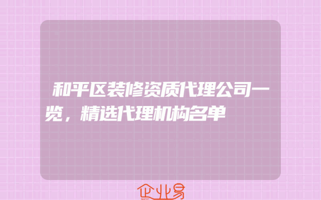 - 和平区装修资质代理公司一览,精选代理机构名单