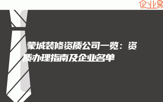 - 蒙城装修资质公司一览:资质办理指南及企业名单