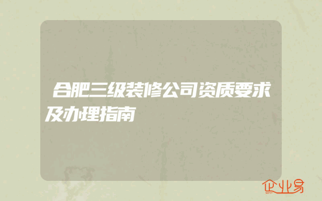 - 合肥三级装修公司资质要求及办理指南一、合肥装修公司三级资质概述在合肥从事装修行业的企业,若欲申请三级资质,必须符合相关标准和要求。三级资质是企业进入装修行业的最基本门槛,旨在保障消费者利益和工程质量。通过