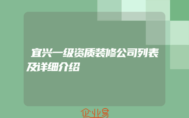 - 宜兴一级资质装修公司列表及详细介绍一、宜兴一级资质装修公司概览在宜兴市,拥有众多装修公司,其中具备一级资质的公司代表着其在装修行业的领先水平和卓越实力。一级资质装修公司通常拥有强大的设计团队、丰富的施工经验、严格的管理制度以及良好的售后服务