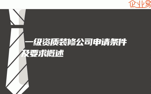 - 一级资质装修公司申请条件及要求概述一、公司基本条件申请一级资质装修公司的首要条件是公司的基本情况。公司必须为合法注册的企业,具备独立的法人资格,且有一定的经营年限。注册资金需达到行业规定的标准以上,以证明公司有足够的经济实力进行装修工程。二