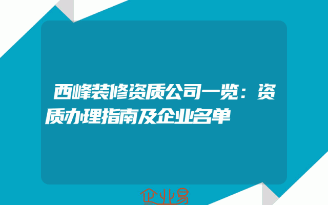- 西峰装修资质公司一览:资质办理指南及企业名单