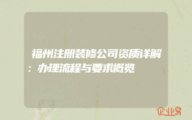 - 福州注册装修公司资质详解:办理流程与要求概览