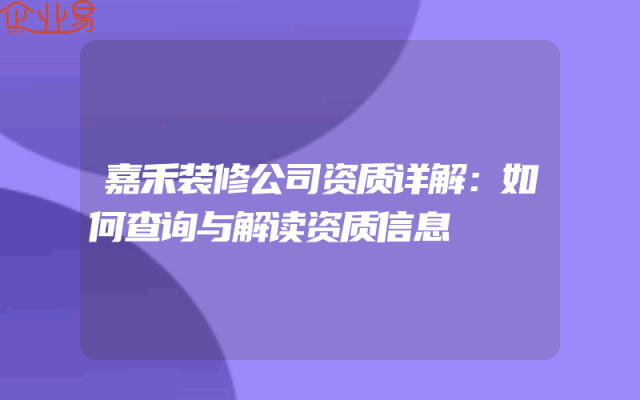 - 嘉禾装修公司资质详解:如何查询与解读资质信息