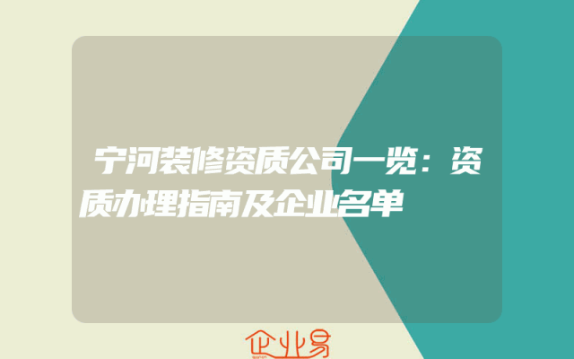 - 宁河装修资质公司一览:资质办理指南及企业名单