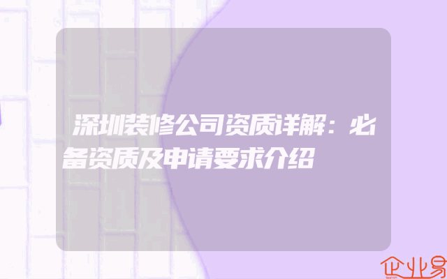 - 深圳装修公司资质详解:必备资质及申请要求介绍