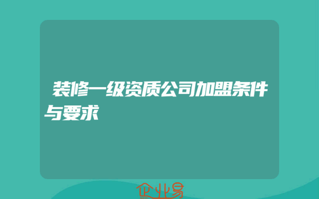 - 装修一级资质公司加盟条件与要求
