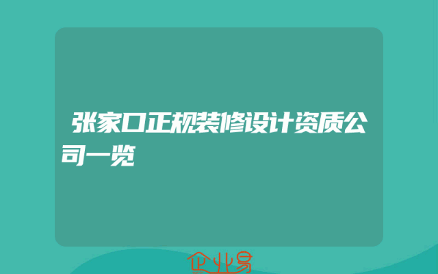 - 张家口正规装修设计资质公司一览