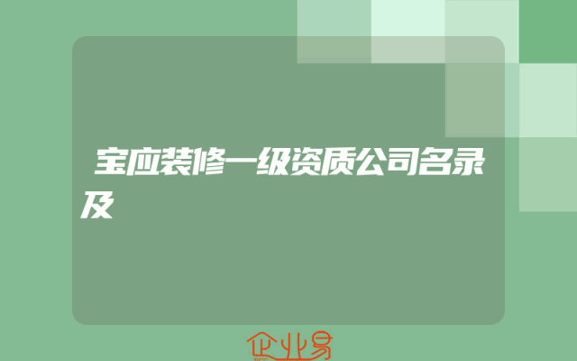 - 宝应装修一级资质公司名录及