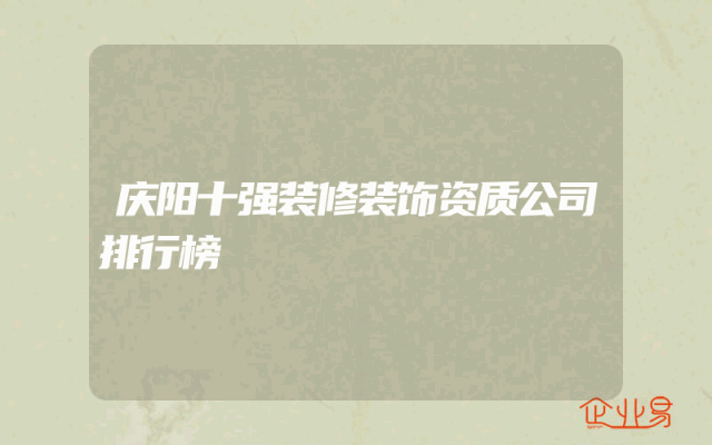 - 庆阳十强装修装饰资质公司排行榜