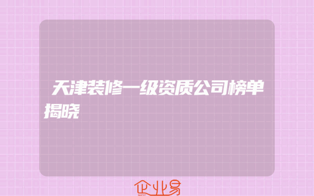 - 天津装修一级资质公司榜单揭晓