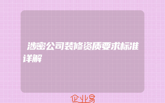 - 涉密公司装修资质要求标准详解