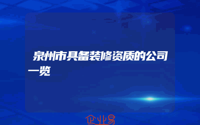 - 泉州市具备装修资质的公司一览