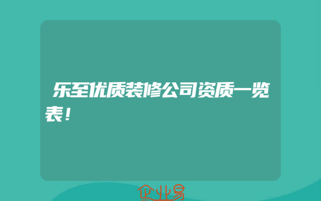 - 乐至优质装修公司资质一览表!
