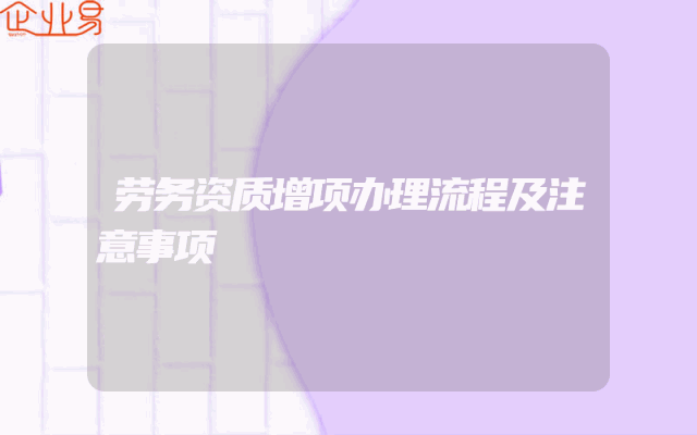 - 劳务资质增项办理流程及注意事项一、了解劳务资质增项的重要性在现代企业运营中,劳务资质是企业提供服务、开展业务的重要凭证。随着市场需求的不断变化,企业可能需要拓展业务范围,这时就需要办理劳务资质增项。了解劳务资质增项的办理流程及其注意事项,有