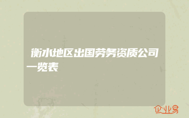 - 衡水地区出国劳务资质公司一览表