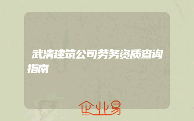 - 武清建筑公司劳务资质查询指南