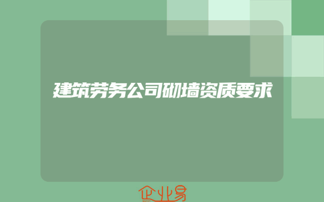 - 建筑劳务公司砌墙资质要求