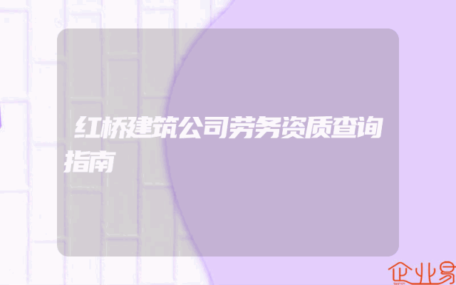 - 红桥建筑公司劳务资质查询指南