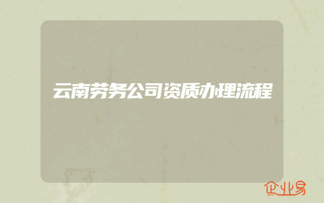 - 云南劳务公司资质办理流程