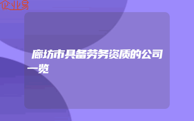 - 廊坊市具备劳务资质的公司一览一、劳务资质概述在廊坊市,具备劳务资质的公司是从事劳务服务的关键要素。这些公司需符合国家相关法律法规的规定,拥有从事劳务服务的资格和条件,为各类企业提供优质、高效的人力资源服务。以下是廊坊市具备劳务资质的公司一览