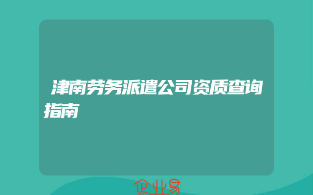 - 津南劳务派遣公司资质查询指南一、了解劳务派遣公司资质的重要性在人力资源领域,劳务派遣公司作为专业服务机构,扮演着重要的角色。为了确保服务质量,保障劳动者权益,合法合规的劳务派遣公司必须具备相应的资质。本文将为您详细介绍如何查询津南劳务派遣公