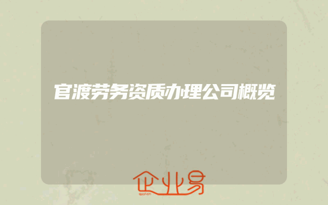 - 官渡劳务资质办理公司概览了解劳务资质办理的重要性在当今的商务环境中,各类企业为了合法运营,都必须拥有相应的资质。对于从事劳务服务的企业而言,获取劳务资质显得尤为重要。在官渡地区,众多劳务资质办理公司应运而生,为各类企业提供专业、高效
