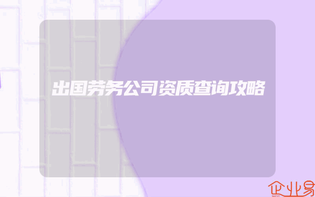 - 出国劳务公司资质查询攻略了解出国劳务公司的重要性随着全球化的发展,出国劳务成为越来越多人的选择。而选择一家合法合规的出国劳务公司至关重要,关系到个人的职业安全以及合法权益。因此,查询出国劳务公司的资质成为了一个不可忽视的环节。查询步