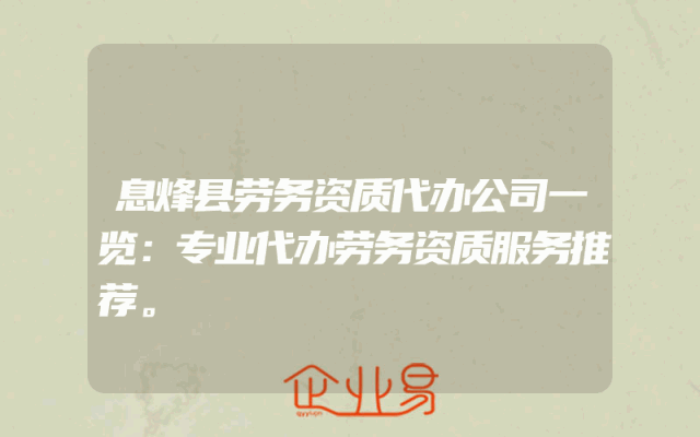 - 息烽县劳务资质代办公司一览:专业代办劳务资质服务推荐。