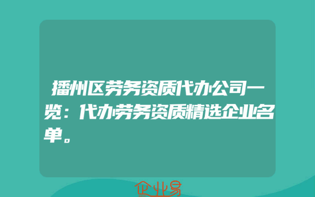 - 播州区劳务资质代办公司一览:代办劳务资质精选企业名单。