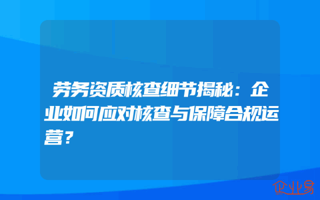 - 劳务资质核查细节揭秘:企业如何应对核查与保障合规运营?