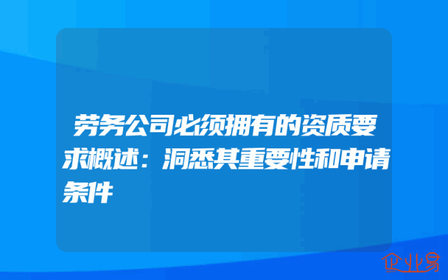 - 劳务公司必须拥有的资质要求概述:洞悉其重要性和申请条件
