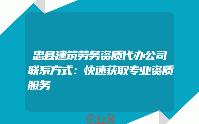 - 忠县建筑劳务资质代办公司联系方式:快速获取专业资质服务