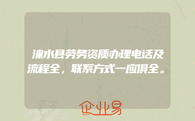 - 涞水县劳务资质办理电话及流程全,联系方式一应俱全。