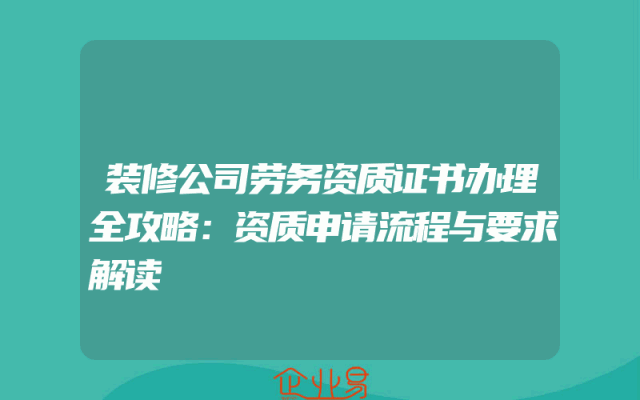 - 装修公司劳务资质证书办理全攻略:资质申请流程与要求解读