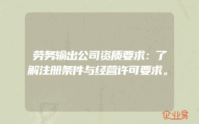 - 劳务输出公司资质要求:了解注册条件与经营许可要求。