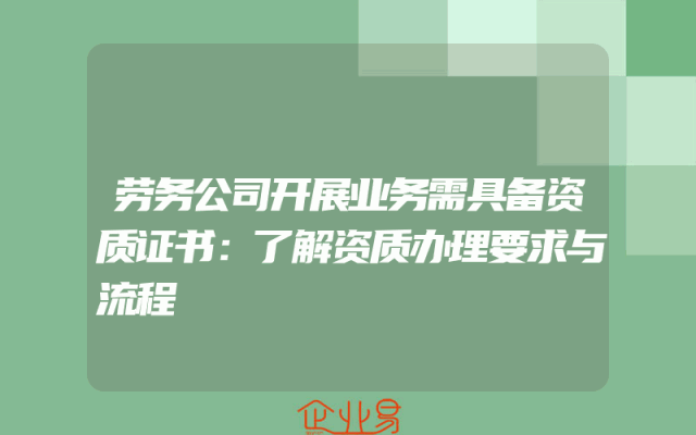 - 劳务公司开展业务需具备资质证书:了解资质办理要求与流程