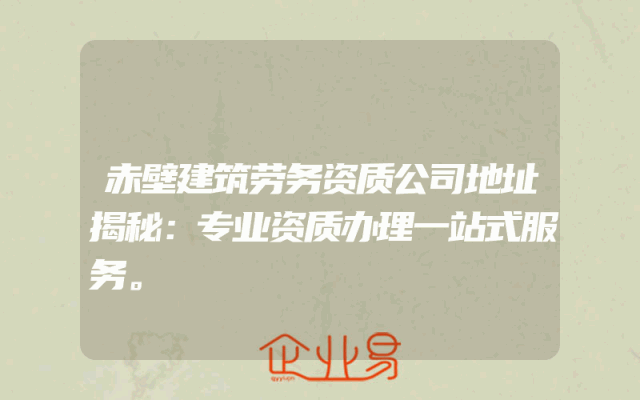 - 赤壁建筑劳务资质公司地址揭秘:专业资质办理一站式服务。