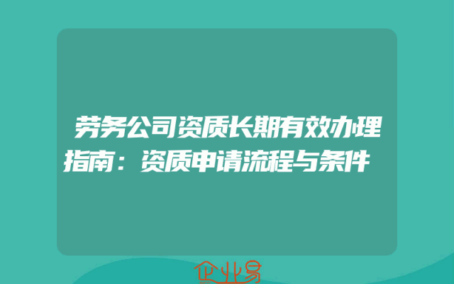 - 劳务公司资质长期有效办理指南:资质申请流程与条件