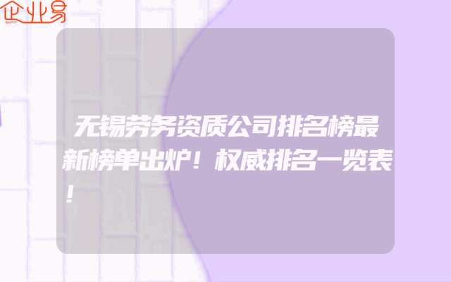 - 无锡劳务资质公司排名榜最新榜单出炉!权威排名一览表!