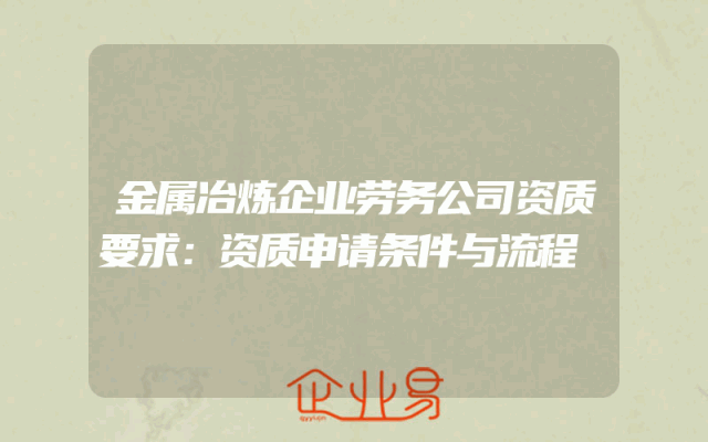 - 金属冶炼企业劳务公司资质要求:资质申请条件与流程