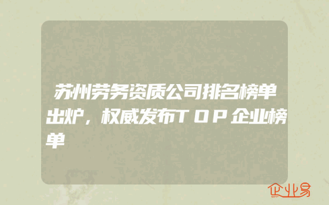 - 苏州劳务资质公司排名榜单出炉,权威发布TOP企业榜单