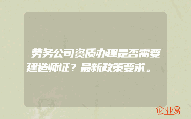 - 劳务公司资质办理是否需要建造师证?最新政策要求。