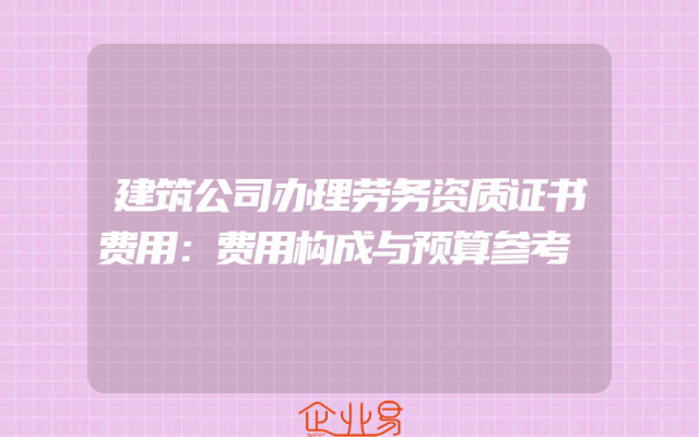 - 建筑公司办理劳务资质证书费用:费用构成与预算参考